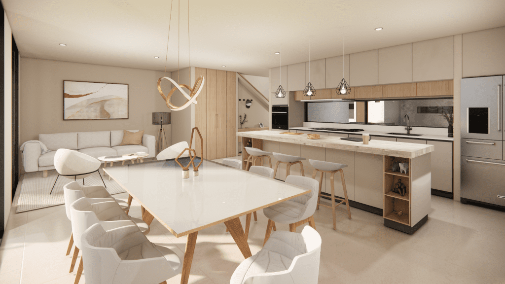 Disfruta de momentos en familia o con amigos en estos amplios espacios que integran sala, comedor y cocina de concepto abierto.