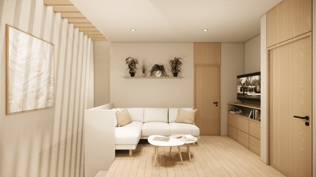 Una sala de estar en el centro de la segunda planta ofrece un acogedor espacio que invita a la relajación y al disfrute de momentos compartidos.